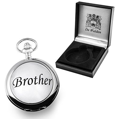 - Fully Engraved Men's 50th Birthday Mother of Pearl Pocket Watch with Solid Pewter 'Brother' Case Front in a quality Presentation Box