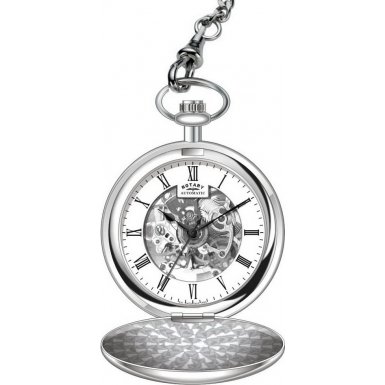 Best Seller! Rotary Stainless Steel Mechanical Pocket Watch & Chain with Skeleton Movement and White Dial. MP00726/01. Review