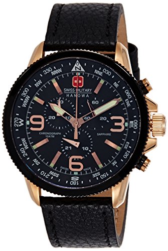 Swiss Military Arrow Men's Quartz Watch with Black Dial Chronograph Display and Black Leather Strap - Swiss Military Arrow Men's Quartz Watch - Swiss Precision Quartz Movement - Sapphire Crystal Glass - 100 Metres Water Resistant - 5 Years Manufacturer Warranty